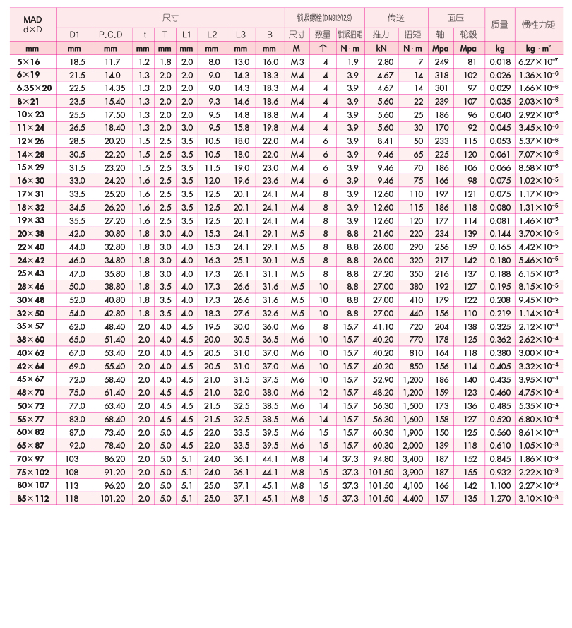 - 连接时,没有轮毂的轴向移动。